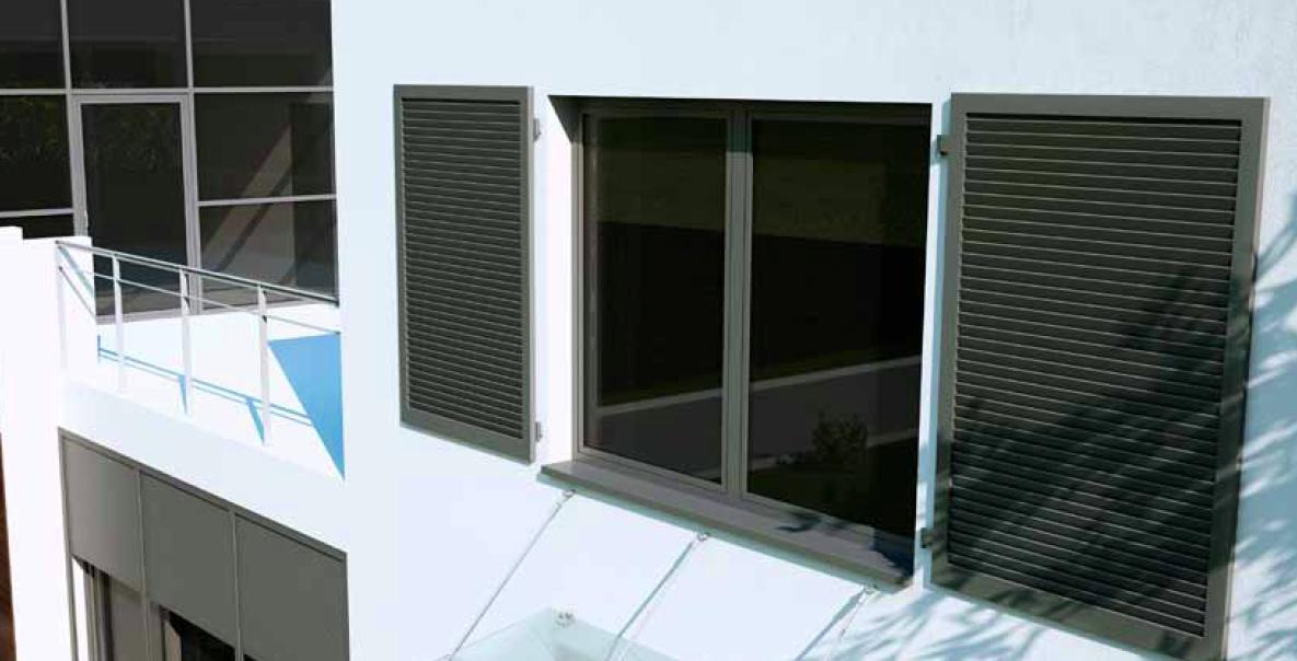 Aluminium shutter are not only durable solution for windows cover and may be a fine decorative element as well. They are fixed to wall.