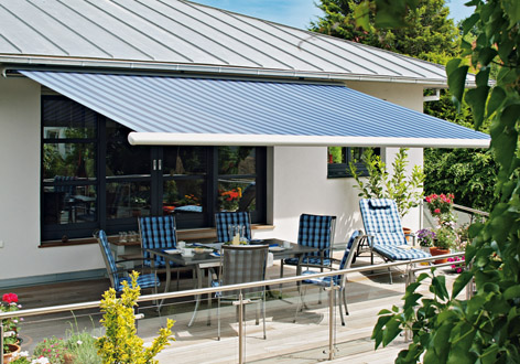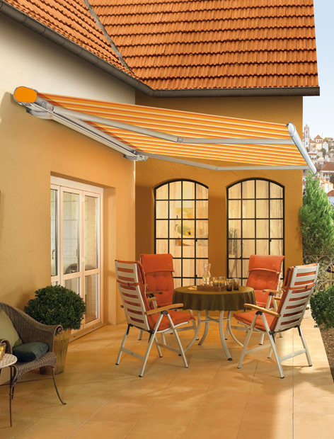 Awnings protect from sunshine (not from rain). Nowadays its can be equipped with wind and solar sensor which manage to roll or unroll awnings' cover if necessary.